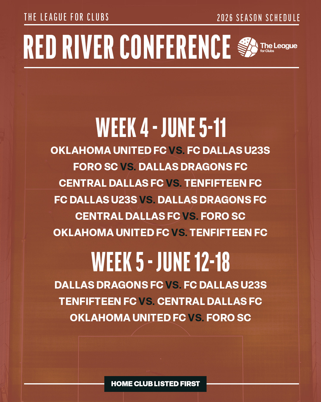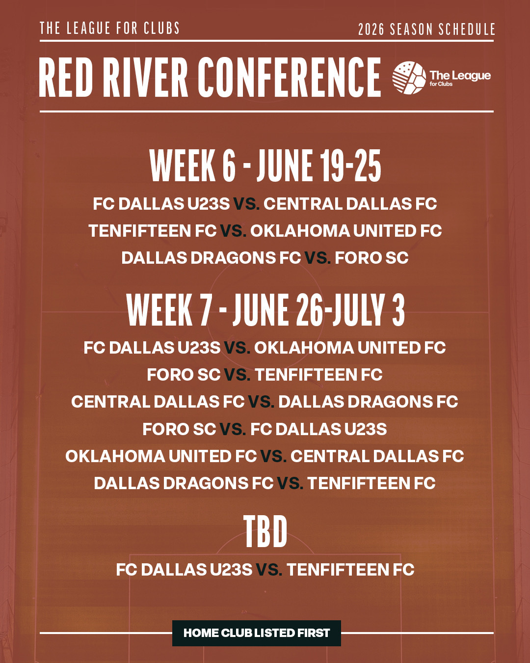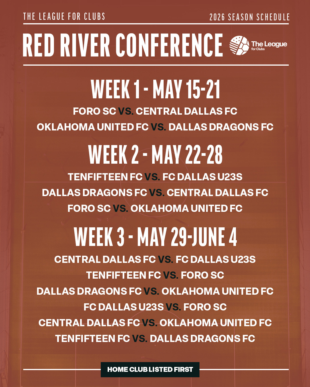 The League for Clubs (TLfC) is excited to announce the alignment and regular season schedule for the Red River Conference, which will include six clubs in the 2026 season.